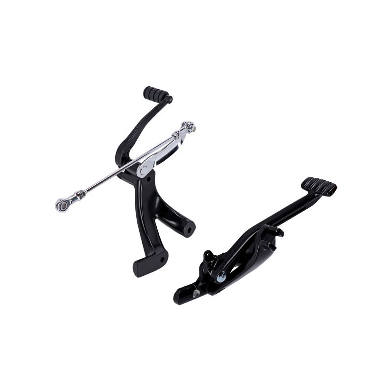 Finition noire. Utilisé pour convertir des commandes intermédiaires en commandes avancées. Parfait pour offrir un peu plus d'espace pour rouler avec les jambes plus tendues. Les repose-pieds OEM peuvent être réutilisés. Construction en acier avec supports en aluminium. Complet avec matériel d'installation.