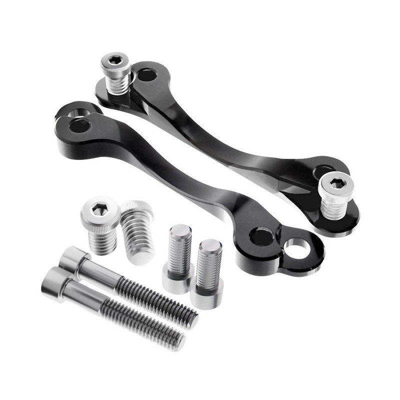 Aluminium anodisé noir avec visserie en acier inoxydable. Nécessaire pour installer un garde-boue avant HD Touring 2024 d'origine (référence 58900582 (acier) ou 58900624 (carbone forgé)) sur un kit de partie avant inversée Kraus KR8 (références 988604/988362). Ce kit n'est pas nécessaire avec un garde-boue avant antérieur à 2024. Il comprend tout le matériel nécessaire à une installation réussie.