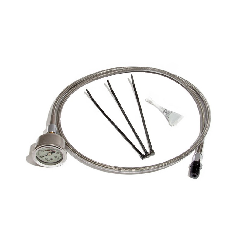 Permet de vérifier la pression d'huile moteur grâce à un manomètre mécanique en acier inoxydable à liquide, avec affichage PSI, tout en maintenant le manomètre électronique d'origine et/ou le voyant de basse pression d'huile branchés. Le kit comprend tous les raccords nécessaires au raccordement du moteur. La conduite mesure 114 cm de long. Elle se raccorde à l'orifice de l'unité ascendante de pression d'huile existante. La conduite d'huile passe par le longeron droit du cadre. La jauge se fixe au guidon à l'aide de colliers de serrage et d'entretoises. Elle se raccorde au carter moteur via l'orifice de pression du filtre à huile. Retirez le bouchon NPT 1/4 d'origine et installez les raccords Feuling.