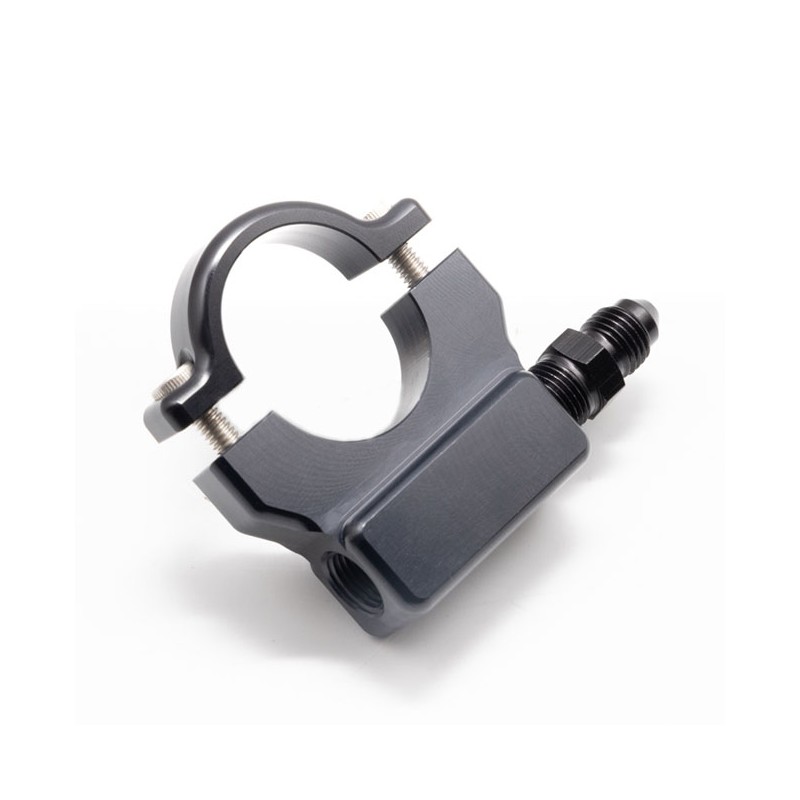 Finition anodisée noire. Permet d'installer un manomètre de pression d'huile de 38 mm (1,5") sur le guidon. Avec adaptateur fileté 1/8 NPT. Fabriqué en aluminium 6061 usiné, il est fourni avec des boulons à tête Allen en acier inoxydable et un adaptateur 1/8 NPT vers -3AN. Fabriqué aux États-Unis.