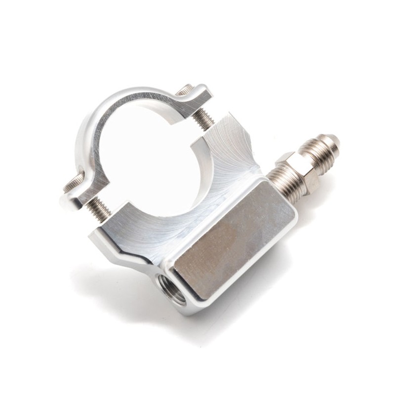 Finition en aluminium brut usiné. Permet d'installer un manomètre de pression d'huile de 38 mm (1,5") sur le guidon. Avec adaptateur fileté 1/8 NPT. Fabriqué en aluminium 6061 usiné, il est fourni avec des boulons à tête Allen en acier inoxydable et un adaptateur 1/8 NPT vers -3AN. Fabriqué aux États-Unis.