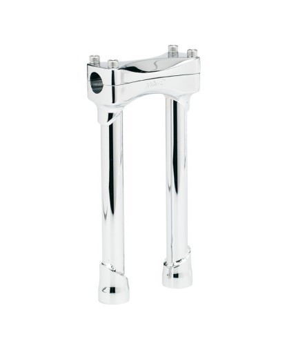 Chromé. Approuvé TUV. Pour guidon de 1 "(25,4 mm). Fabriqué à partir de la tige en acier moulé de haute qualité et de la partie inférieure filetée. Les tubes de montage sont en chromoly 4130 soudé au TIG sans soudure avec un tube de 3 mm d'épaisseur et des trous de montage filetés 1 / 2-13 qui prendront en stock les boulons de contremarche. L'espacement est de 3 -1/2 "(89 mm), pour s'adapter à la plupart des arbres triples supérieurs HD. Le modèle de boulon de serrage supérieur prendra en charge les supports de speedo et de tachymètre HD.